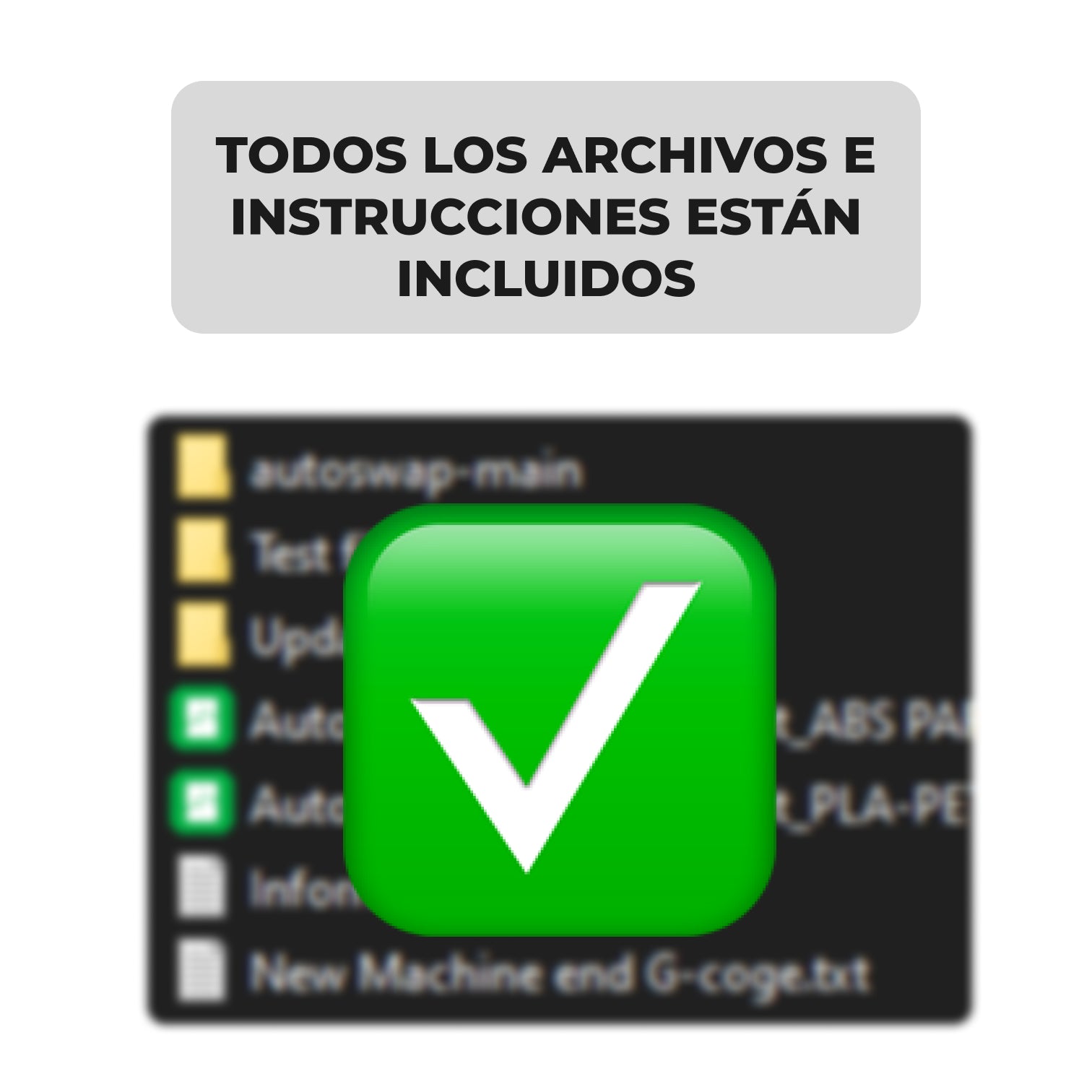 Para mantener el coste lo más bajo posible, AutoSwap se presenta como un kit DIY (hazlo tú mismo) fácil de montar. Recibirás todas las piezas de hardware necesarias en un paquete compacto, y podrás imprimir tú mismo el resto. Incluimos un enlace con todos los archivos necesarios para la impresión.